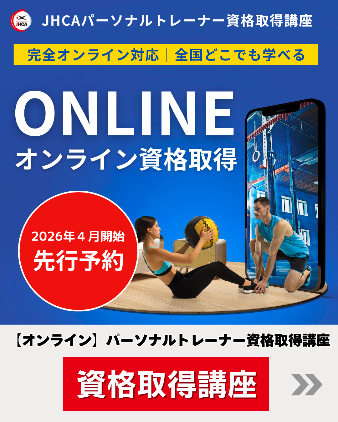 全国の大手フィットネスクラブで仕事ができる資格です! JHCAパーソナルトレーナー資格取得養成講座 ~フィジカルコンディショナー~ |