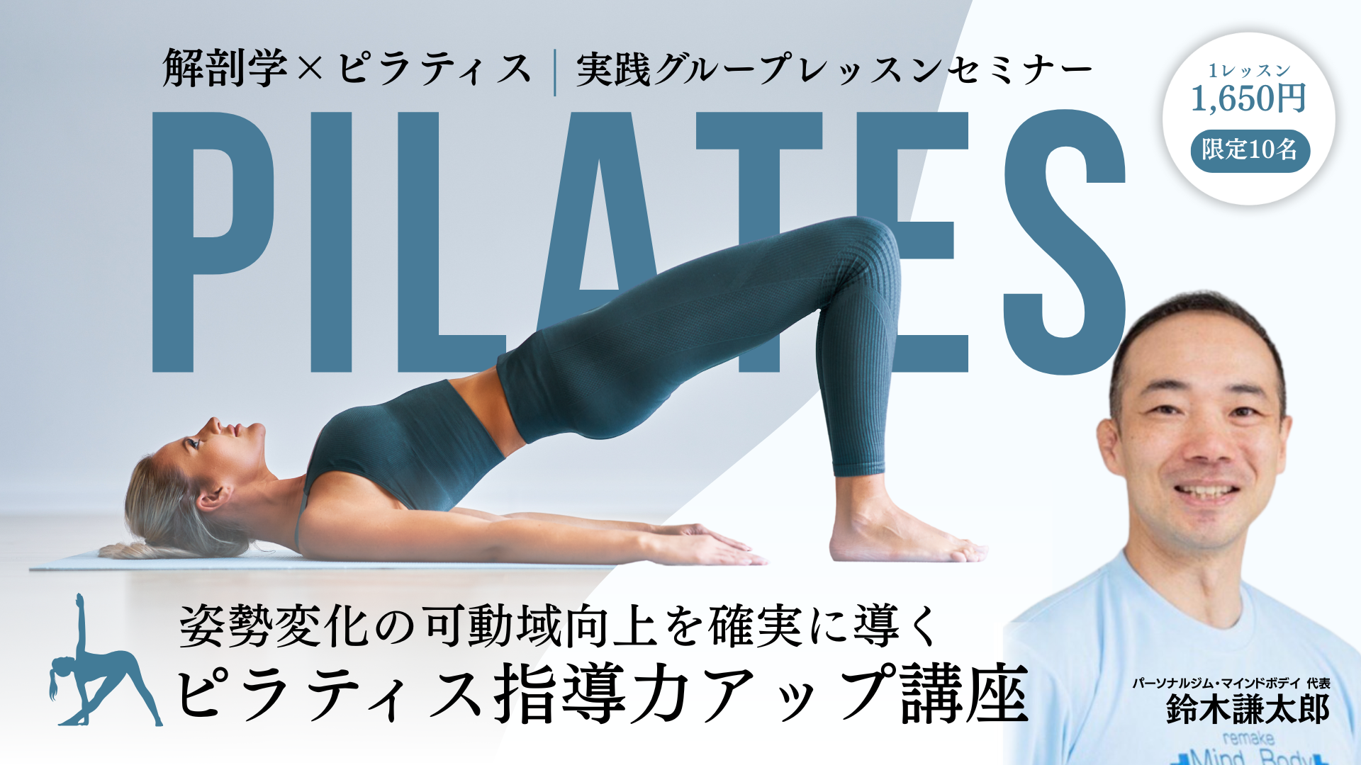 健康・美容のためのエクササイズが求められる時代から、「腰痛予防」「姿勢改善」「介護予防」など、より“リアル”で“医療的ニーズ”のある運動が求められる時代へ。ピラティスも、単なるムーブメントではなく【身体の変化を引き出す実践指導】が必要とされています。 今回のセミナーでは、現役でパーソナルトレーニングジムを20年運営してきた実力派トレーナーが、バイオメカニクスと解剖学の視点から、即現場で使えるピラティスレッスンを指導。 現場での即実践が可能な引き出しと、変化を実感させる細やかなアプローチ力が身につきます。ご参加、お待ちしております! |