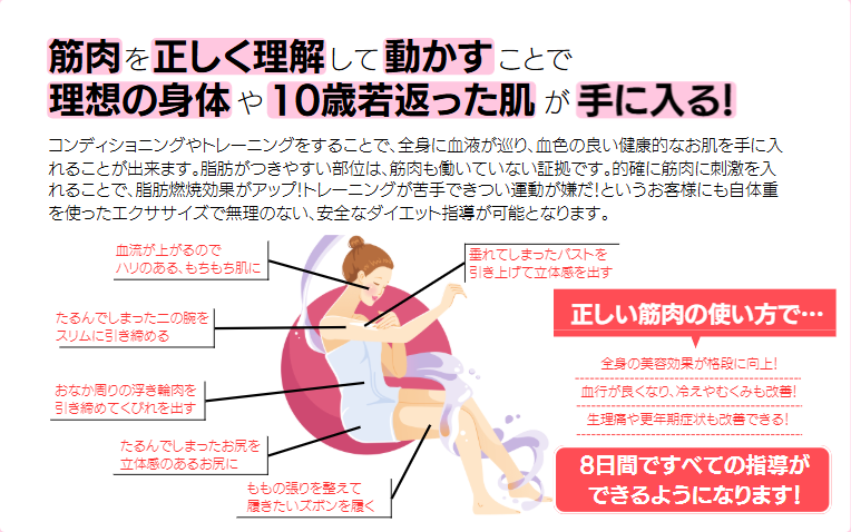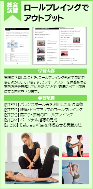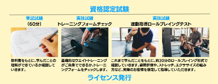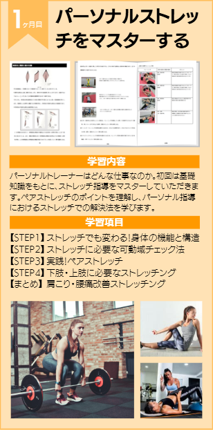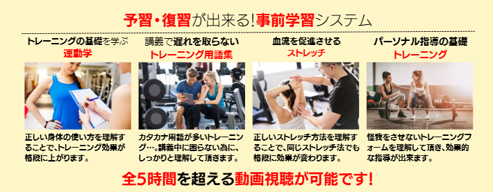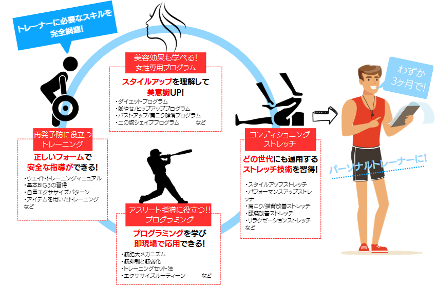| 即現場で使えるカリキュラムで プロのトレーナーへ! |