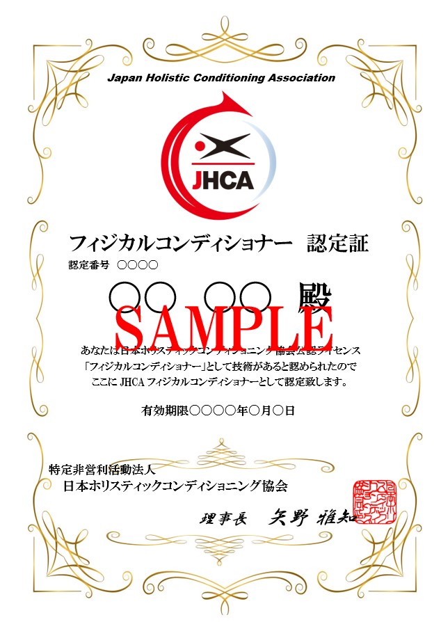対面講習 講座 | カリキュラム概要 | 対面講座1 理論;3時間 実技;3時間 | 運動指導における実践指導理論 ・姿勢分析とコンディショニング理論 ・骨盤帯の機能改善について(解剖学・運動学) | 対面講座2 理論;6時間 実技;3時間 | 運動指導における実践指導理論 ・肩甲帯の機能改善について(解剖学・運動学) ・体幹部の機能改善について(解剖学・運動学) | 対面講座3 実技指導演習 6時間 | 運動指導における総合実技演習(ロールプレイング) ・ヒップアップ指導および骨盤帯機能改善(腰痛予防指導) ・バストアップ指導および胸郭・肩甲帯機能改善(肩こり予防指導) | 対面講座4 実技指導演習 6時間 | 運動指導における総合実技演習(ロールプレイング) ・『ポッコリお腹改善』体形改善指導法 ・『二の腕引締め』『O脚/モモの張り』体型改善指導法 | | 認定試験 | JHCAパーソナルトレーナー(FC)認定試験 ・筆記試験(60分)実技試験(パーソナルレッスン指導) *対面講座4の受講終了後に実施します。 | |