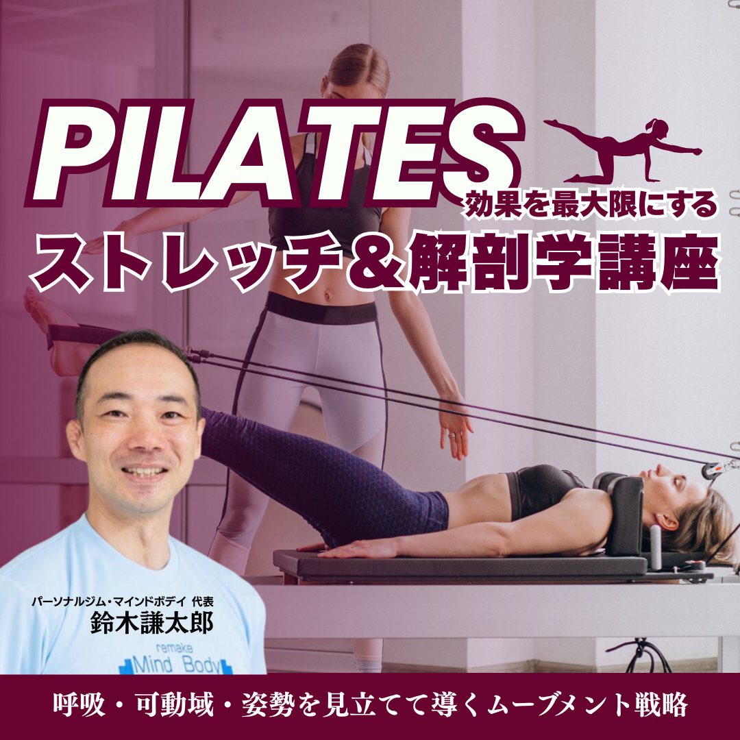 | 受講区分 | 1講座 (3時間) | 2講座 (6時間) | 4講座受講 (12時間) | 全8講座受講 (24時間) | | 一般受講 | 11,000円 | 20,000円 | 36,000円 | 64,000円 | | JHCA会員 | 8,800円 | 16,000円 | 30,000円 | 56,100円 | ピラティス 団体有資格者 | 8,800円 | 16,000円 | 30,000円 | 56,100円 | | | 詳細案内 | 住所)東京都 渋谷区 恵比寿西 1-8-2 ウエストパレスビル508号室 事務局電話)03-3413-7270 メール)info@j-holistic.org 緊急連絡先)090-9977ー8174 * 2025年11月講座より、会場が「恵比寿Mind_Body」に変更になりました。ご注意ください。 当日の持ち物 受講票、筆記用具、スポーツウェア、タオル 有資格者の方へ「単位付与について」・JHCA資格取得者:1講座;3.0単位付与 | 担当講師紹介 |  | 筋トレでお客様の夢をサポートする パーソナルトレーナー 鈴木 謙太郎 kentaro suzuki パーソナルジム・マインドボデイ 代表 (恵比寿2店舗・都立大学前1店舗経営) (社)日本加圧トレーニング学会・加圧スペシャルインストラクター 「JHCAの前進である「FNC研究所」初代スタッフ(FNCスペシャリスト・講師指導歴24年)2005年4月より、東京恵比寿にてパーソナルジム・マインドボデイを開設し20年目。現在は東京、恵比寿駅と都立大学駅にて2店舗を開業。男子高校野球部・男子大学バスケットボール部・女子大学バスケットボール部などの指導経験も豊富。 クライアントの8割は経営者、各種フリーランス。多忙なクライアントでも「長く続けられるパーソナルトレーニングジム」を目指した結果、1年以上継続するお客様の継続率が82%以上となる。 10年以上継続するクライアントも多数で、継続とご紹介のみでパーソナルレッスンを運営する。レッスンでは説明が分かりやすいと評判で、フィットネス初心者を中級者に引き上げる事を得意とする。 また、自身が実践してきた腰や膝などのトレーニングリハビリを希望するオーダーも多い。トレーニングでのバランス調整による改善実績も多数。 JHCAオンラインサロンより(動画Sample) 「マット1枚で完結!ストレッチ×ピラティスで行う半施術型レッスン」 | |