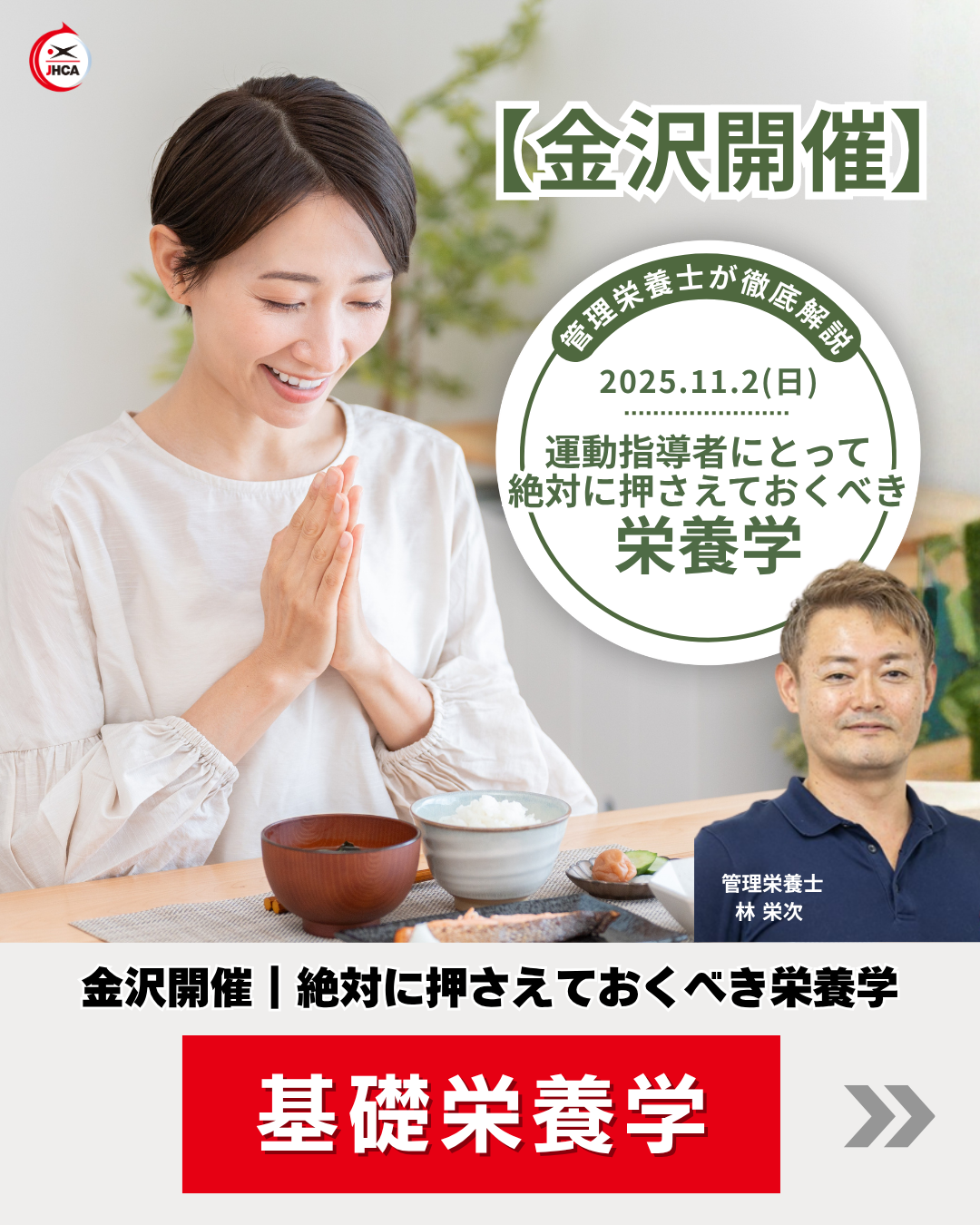 第二部:13:30~15:30 「筋肉と体組成に直結する栄養学」 タンパク質とビタミン・ミネラル ・タンパク質:筋肉の維持・合成に必須。 量(体重×1.2〜2.0g/日)と分配(1食20〜30g)が重要。 ・ビタミンD・カルシウム・鉄など:骨・血液・筋肉機能に欠かせない。 特に女性や高齢者では不足が多い。 ・水分と電解質:運動時の脱水・パフォーマンス低下を防ぐ。 「筋肉を増やすための食べ方」「疲労回復を助ける栄養素」 などを正しく説明できるようになります。
